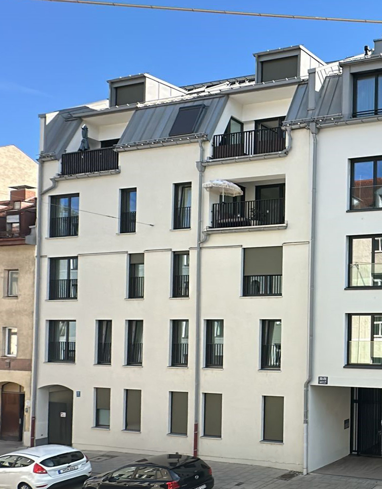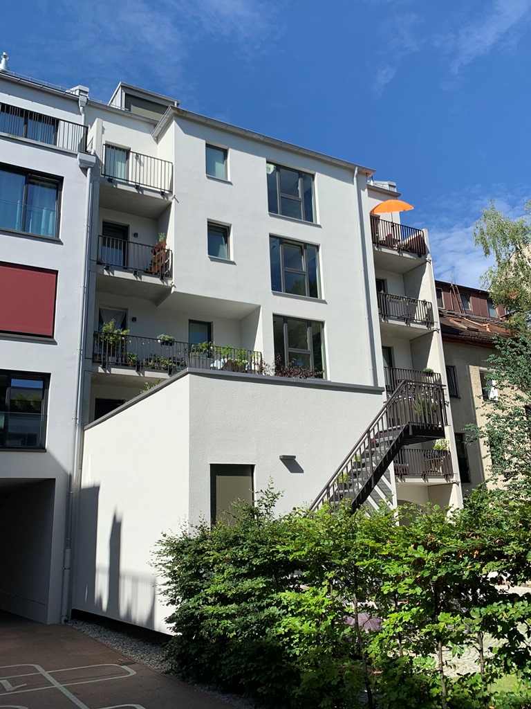 Das vormals 3-geschossige Haus wurde aufwendig saniert, erweitert und aufgestockt. So sind 10 Neubauwohnungen unterschiedlicher Größe entstanden, die sich durch ihre moderne und hochwertige Ausstattung, sowie Ihre Helligkeit und zeitlose Eleganz auszeichnen. Die Freisitze orientieren sich entweder in den ruhigen Innenhof oder Richtung Süden.